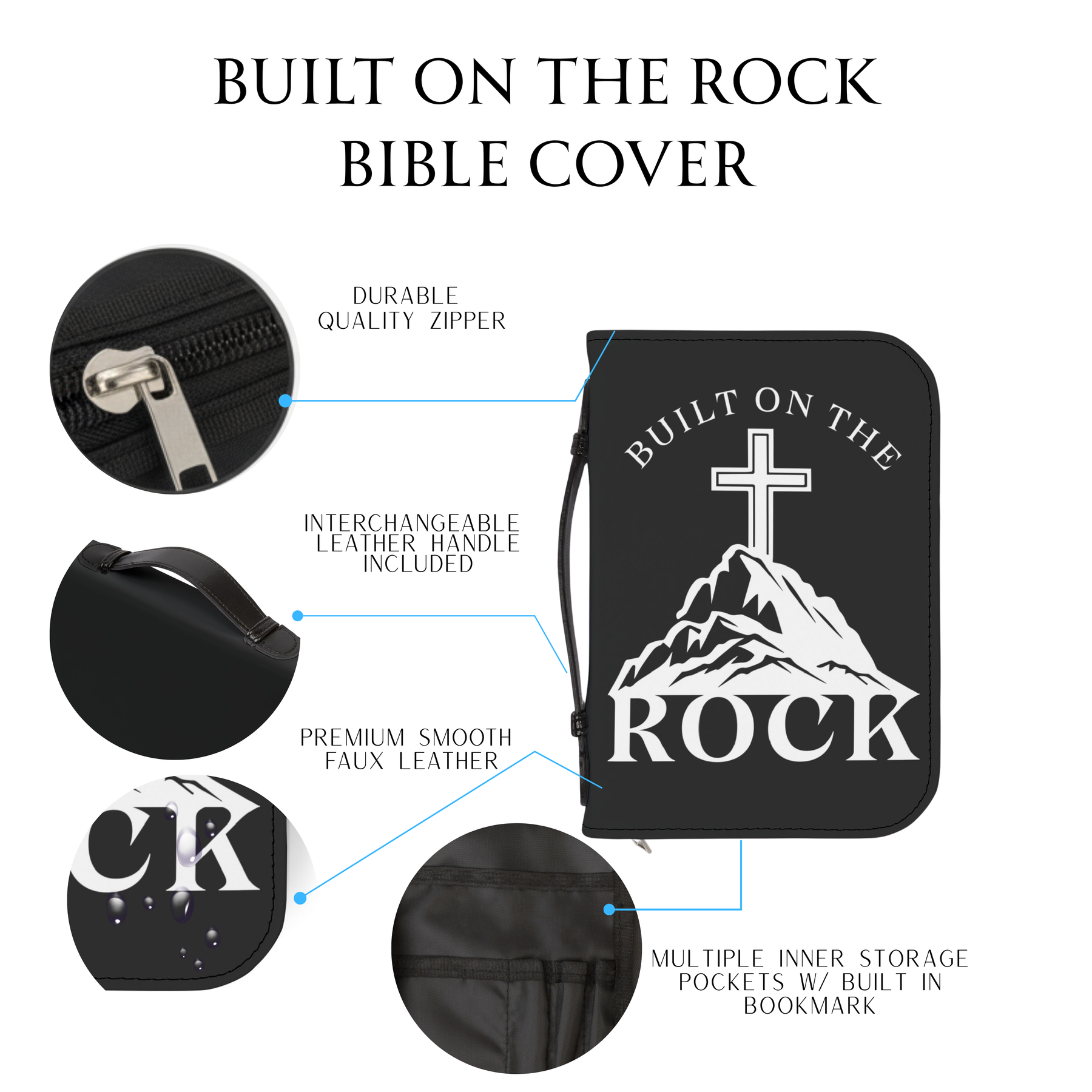 Inspired by Matthew 7:24-27 and Luke 6:47-49, this classic Bible cover reminds you daily to build your life on the solid foundation of Christ. The timeless black leather design features elegant embossed text and a sophisticated, understated style perfect for any setting.