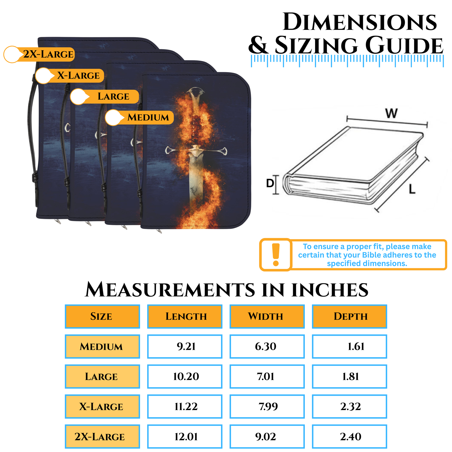 Available in Medium, Large, X-Large, and 2X-Large to fit most Bibles. We recommend ordering one size up for a comfortable fit with room for notes and bookmarks.