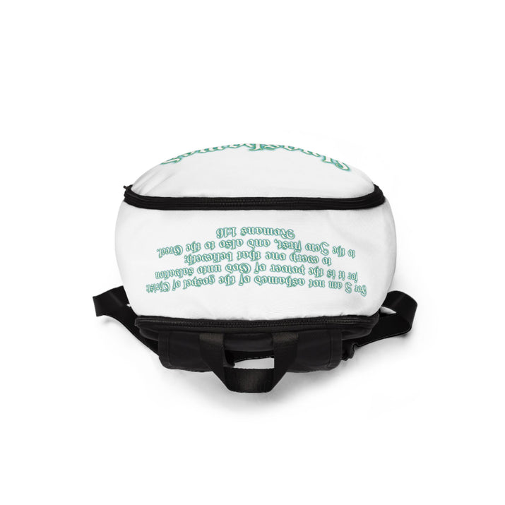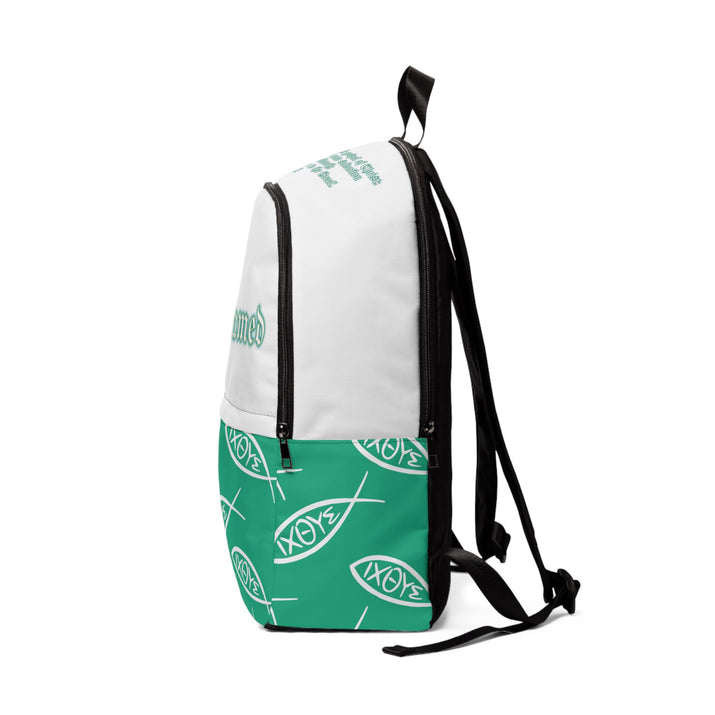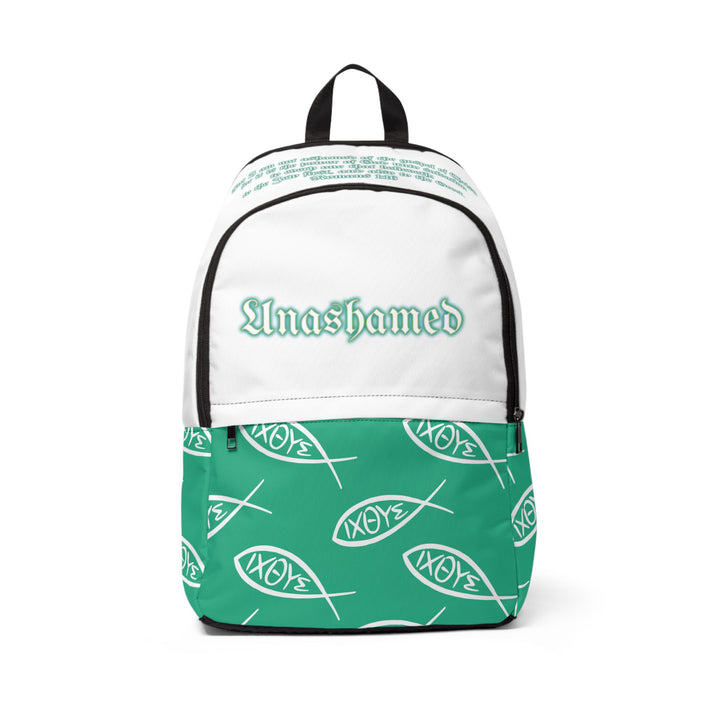 Christian teal unashamed fisher of men Backpack, bible verse scripture Jesus faith bookbag