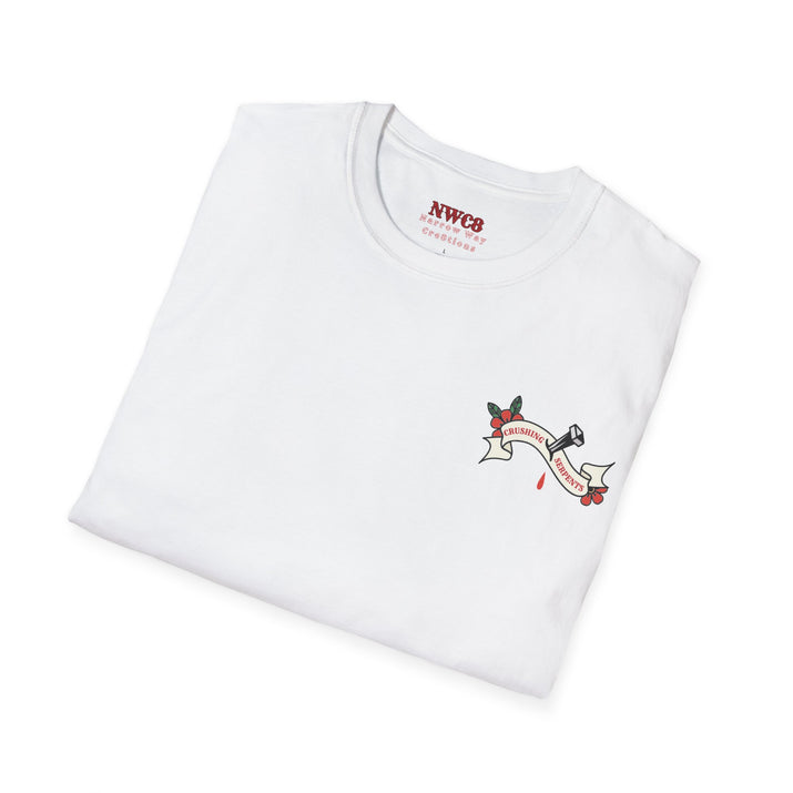 This bold, traditional tattoo-style design makes a statement. It's edgy, it's powerful, and it's unapologetically Christian. When people see it, they're encountering the truth that Jesus didn't just win – He crushed the enemy completely. And for you, it's the daily reminder that you walk in that same crushing victory.