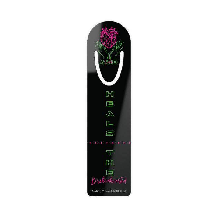 Neon heals the brokenhearted Jesus bible bookmark, mended heart in Jesus hands scripture quote Christian page marker