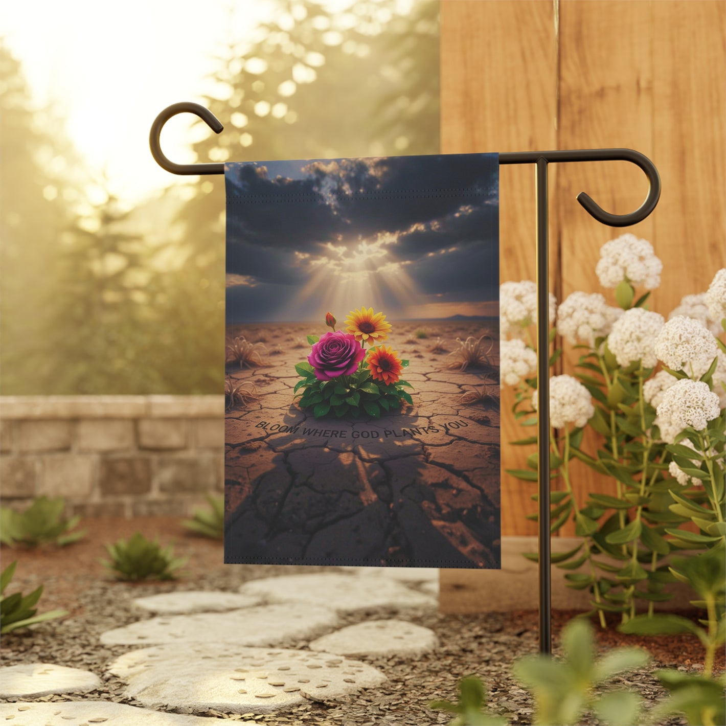 This isn't just a garden banner. It's a stand. A declaration. A visible reminder that when the world feels heavy, we lift our voices — and our flags — in prayer.