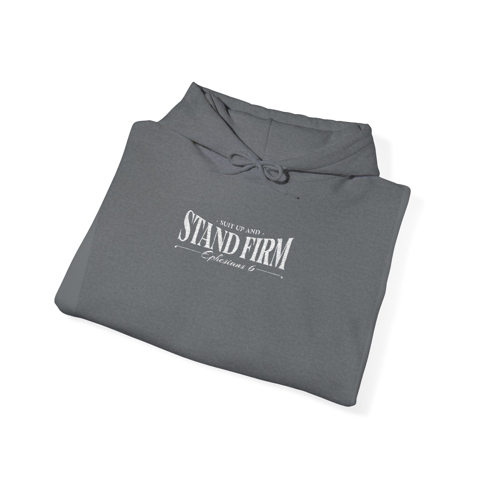 - Front Center Chest: "Suit Up and Stand Firm - Ephesians 6"